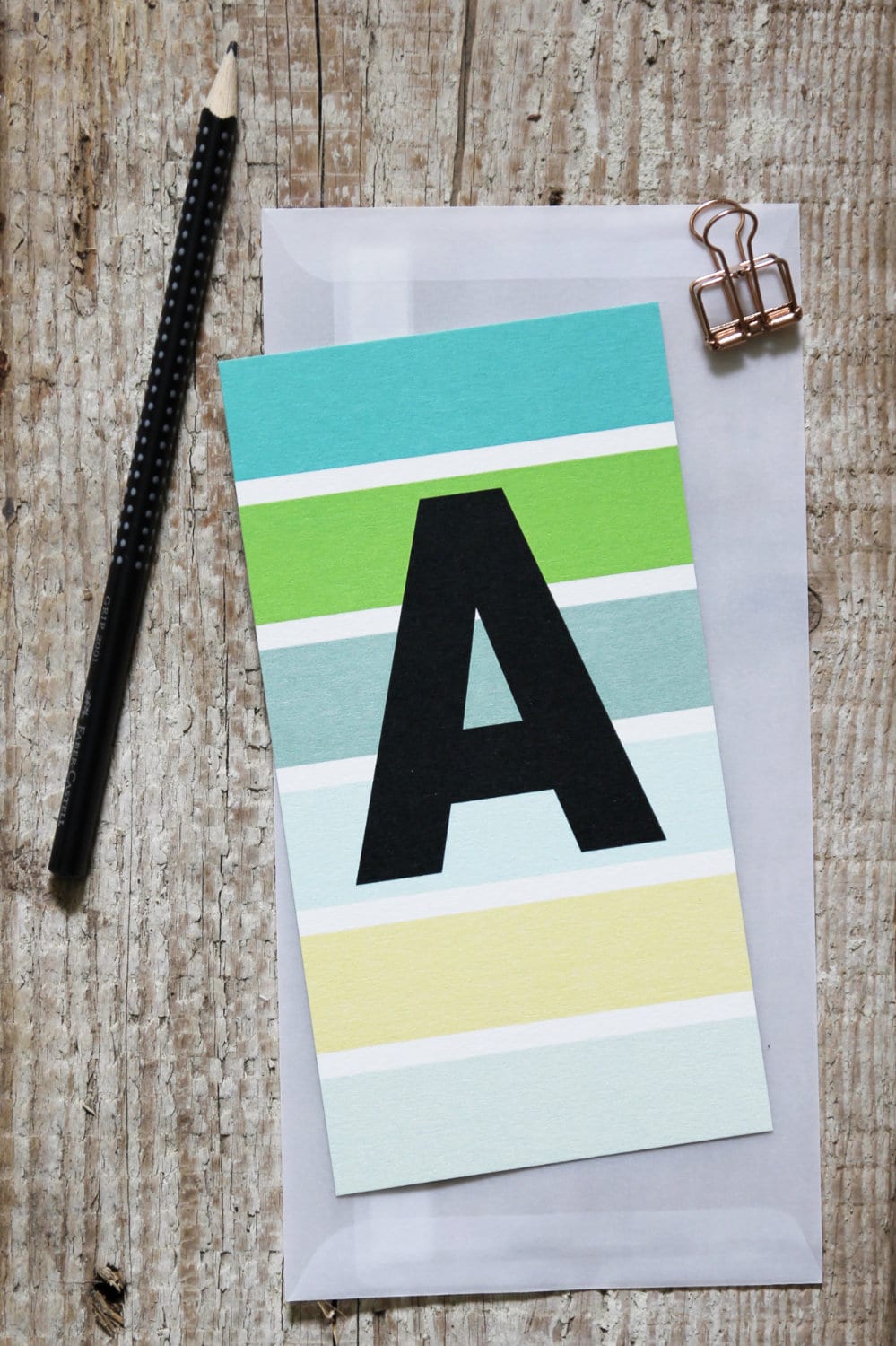 • Bunt gestreifte ABC-Postkarte – Buchstabe „A“