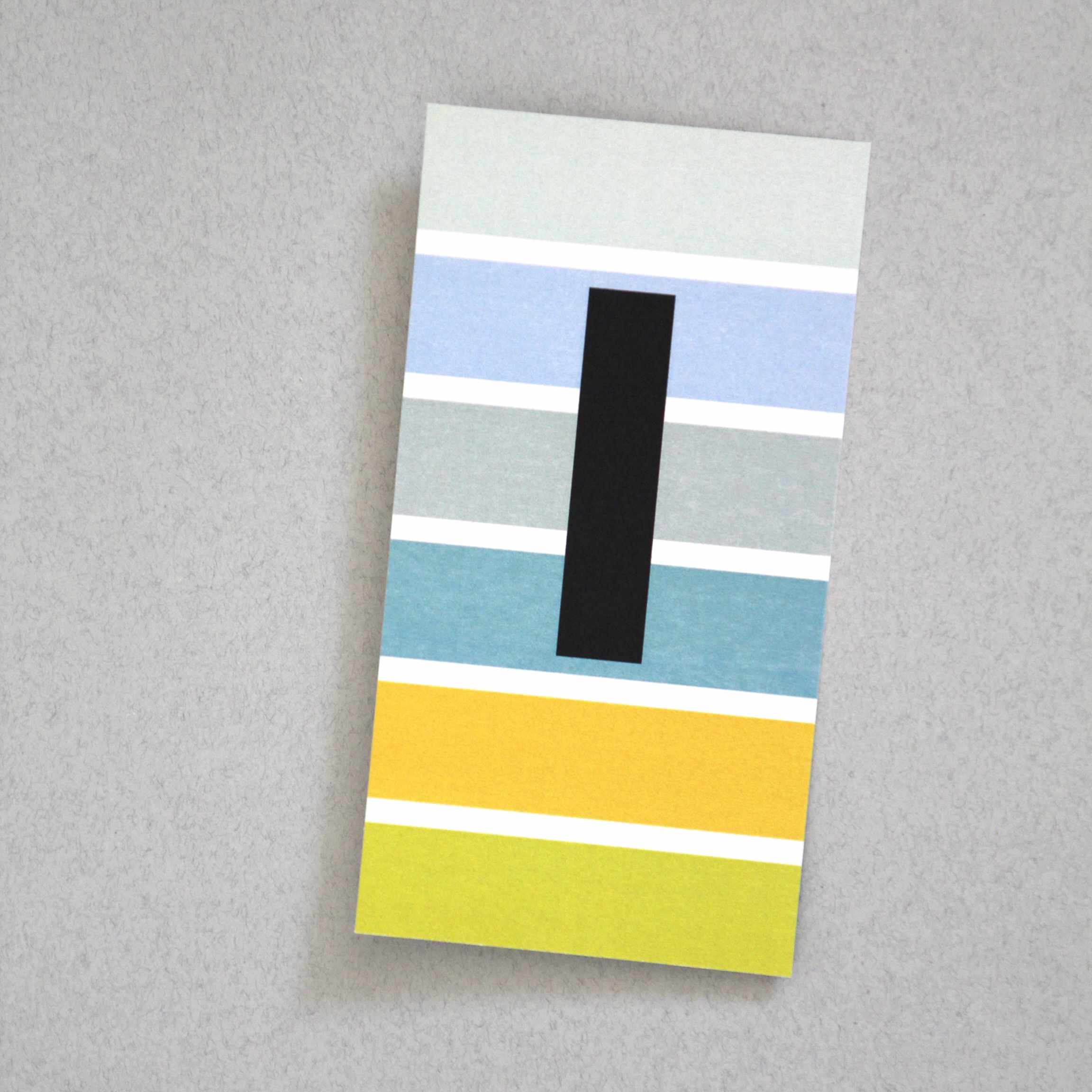 Bunt gestreifte ABC-Postkarte – Buchstabe „I“.