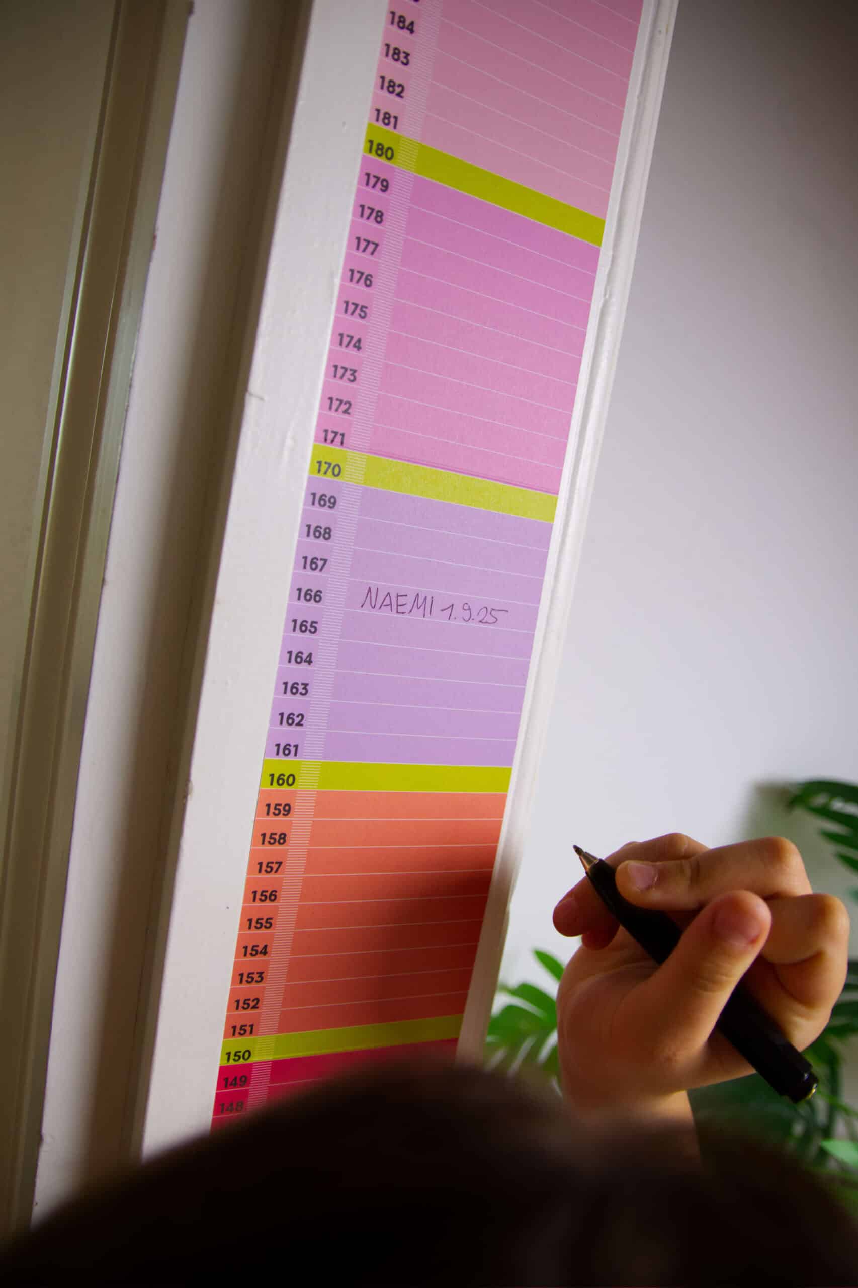 Tipp: Du kannst zwei Messlatten übereinander platzieren und kannst dann von 70 bis 190 cm messen. Hier geht’s zum günstigen Doppelpack.