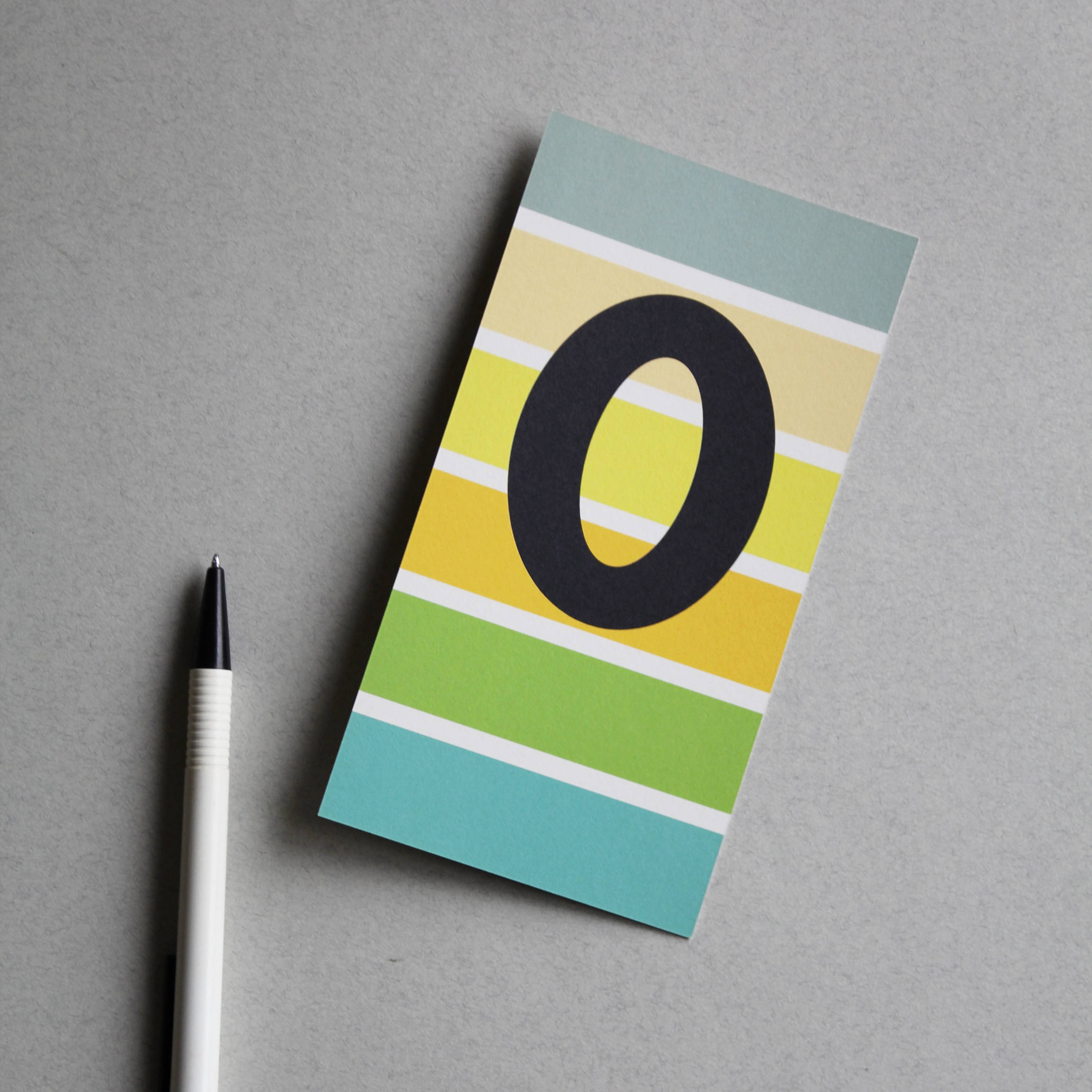 Fröhlich-bunt-gestreifte Ziffern-Postkarte – perfekt als Dekoration oder auch für die Schule oder den Kindergarten geeignet.