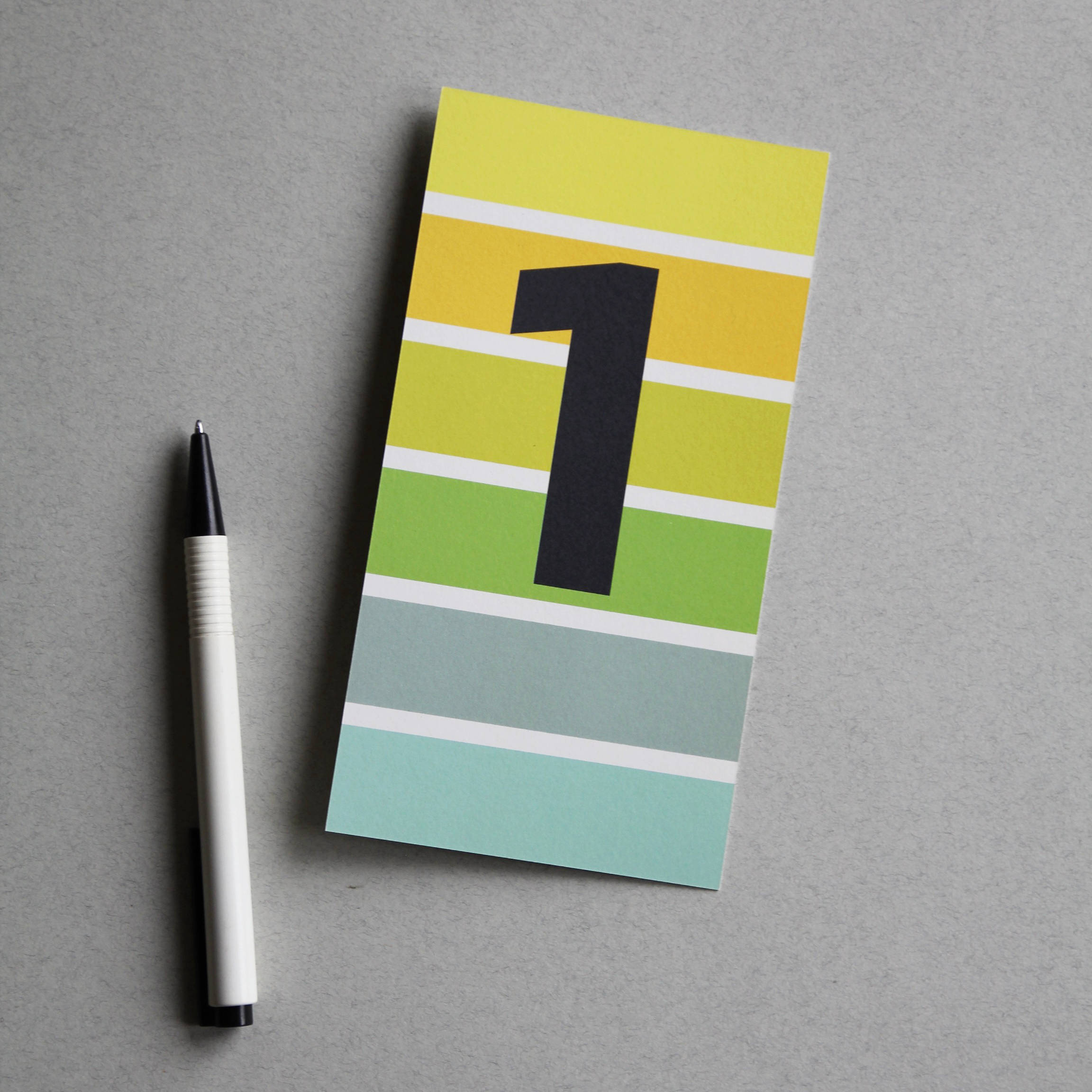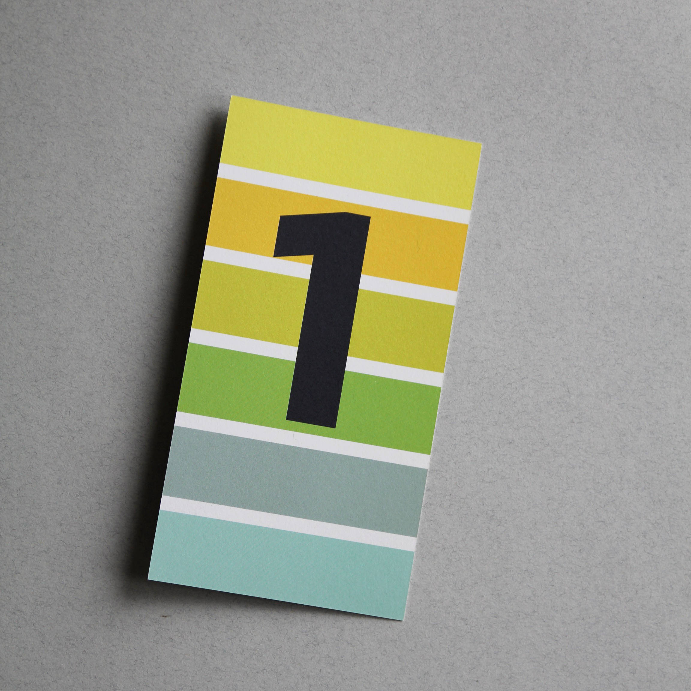 Fröhlich-bunt-gestreifte Ziffern-Postkarte – perfekt als Dekoration oder auch für die Schule oder den Kindergarten geeignet.